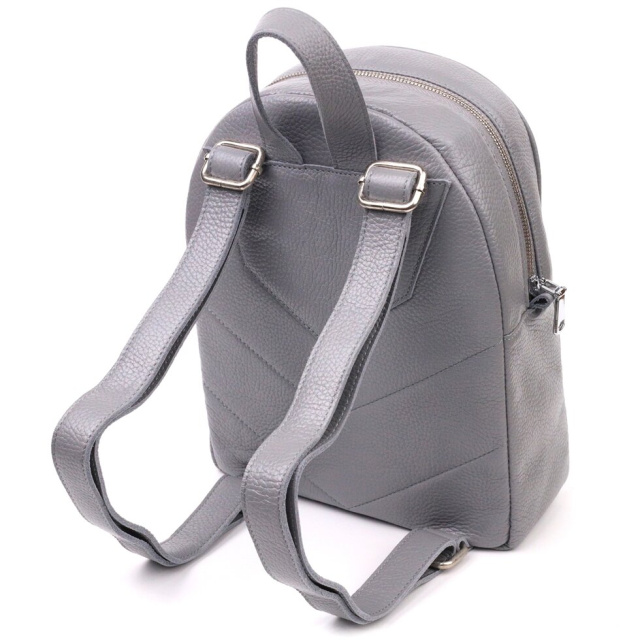 Чудовий жіночий рюкзак для тих хто цінує простоту та стильний дизайн. Матеріал виготовлення – натуральна шкіра високої якості з відмінними характеристиками та показниками стійкості до зношування. Дана модель виконана в ніжному сірому кольорі і має приємну на дотик зернисту фактуру. Такий рюкзак стане чудовим подарунком на будь-яке свято.
