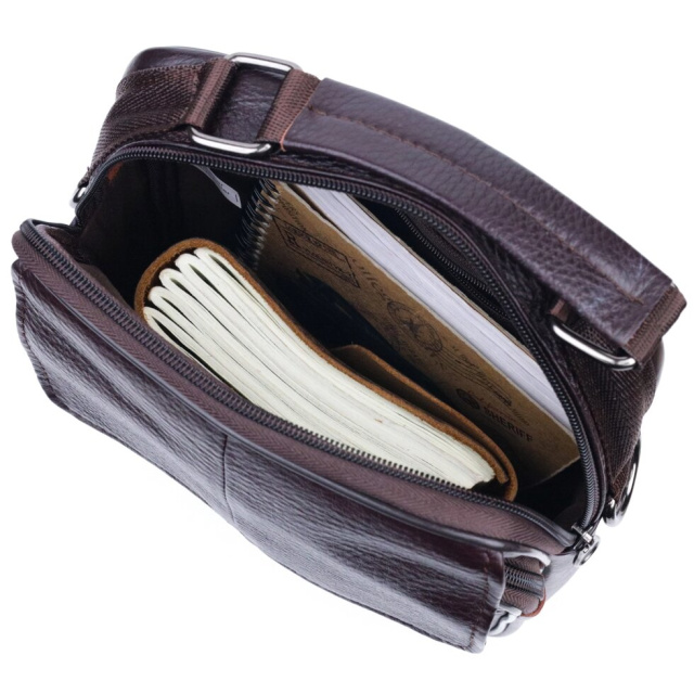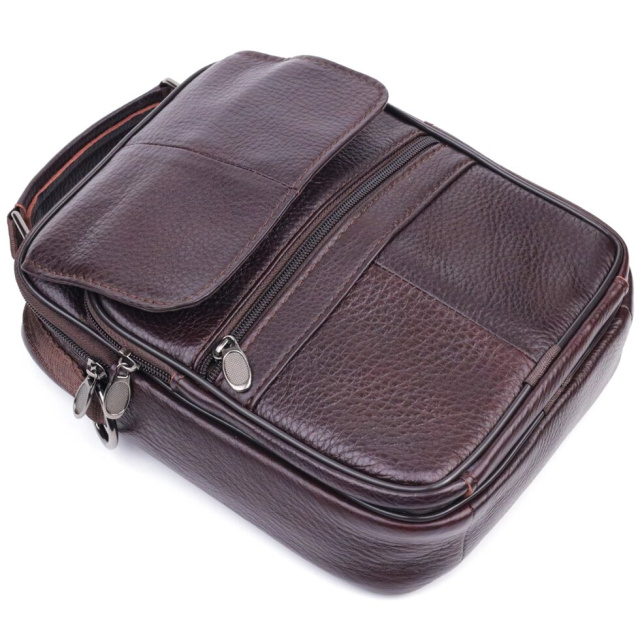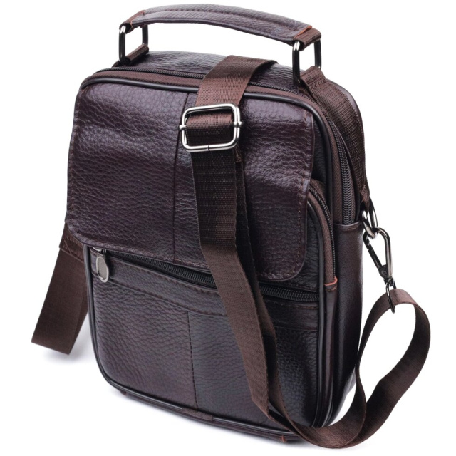 Відмінна чоловіча сумка середнього розміру із натуральної шкіри. Модель ідеально підійде щодня. У сумку з легкістю помістяться всі необхідні речі. З такою сумкою зручно ходитиме на роботу або зустрічі. Доповнено виріб якісною фурнітурою, темно-срібло кольору. Сумка стане чудовим подарунком для близької людини.