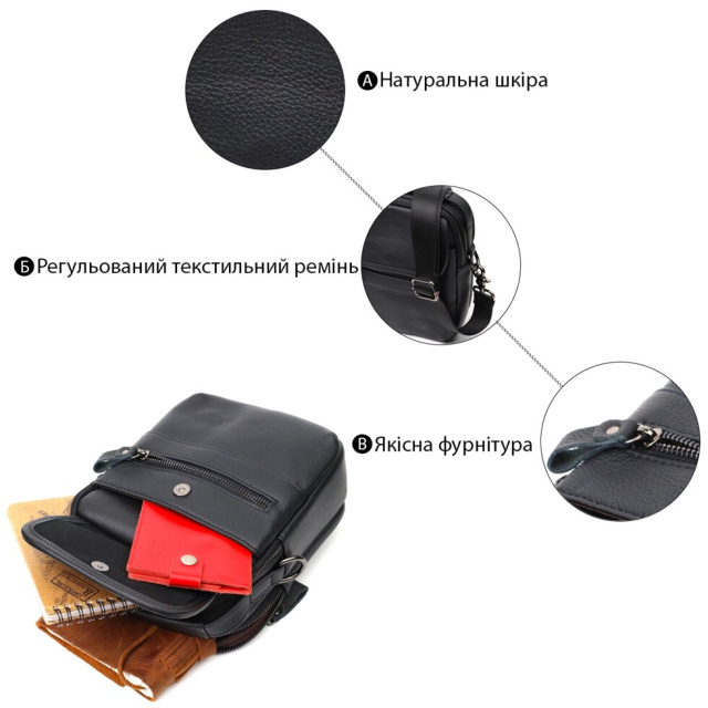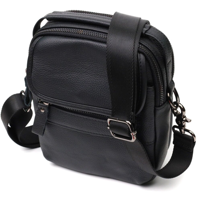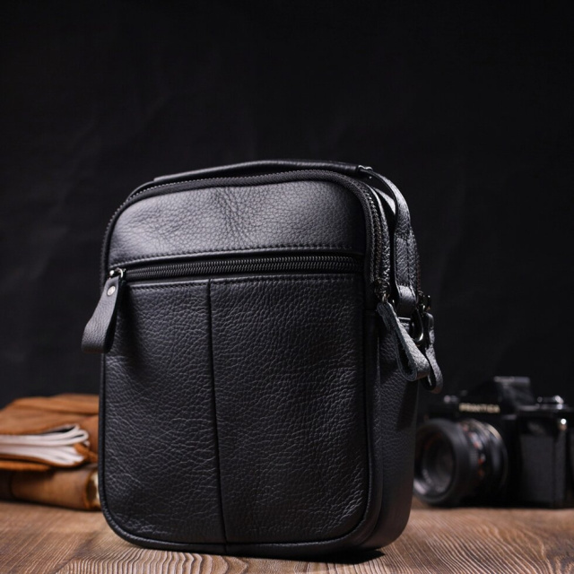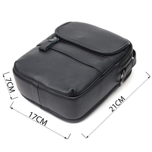 Невелика сумка із натуральної шкіри. Аксесуар складається з двох основних відділень на блискавках, потайної кишені всередині, накладної кишені під клапаном на магніті, на лицьовій стороні, вбудованої кишені на блискавці, на лицьовій стороні та однієї горизонтальної кишені на блискавці ззаду. Носити сумку можна на плечі, через плече, а також у руках за ручку. Ідеальний варіант як для ділового, так і для міського стилю.