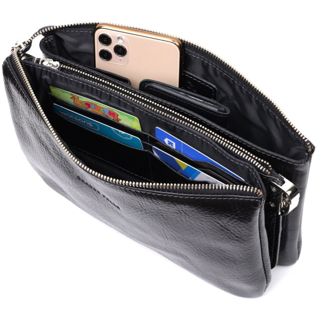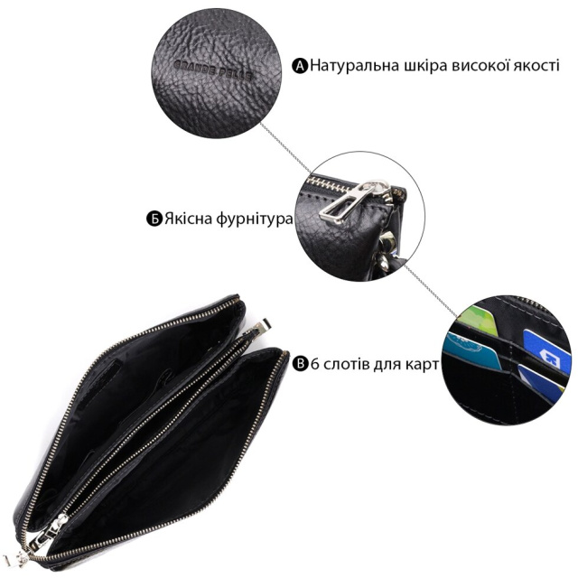 Стильний жіночий трендовий клатч із зернистої італійської натуральної шкіри. Модель ідеально підкреслить ваше почуття стилю та доповнить образ. Аксесуар виглядає дуже витримано та зі смаком. Клатч має велику кількість різноманітних кишень та відділень. Якщо ви шукаєте універсальну сумку на кожен день чи вечір – це чудовий варіант. Буде ідеальним подарунком для близької людини. Модель упакована у фірмовий повстяний мішок.