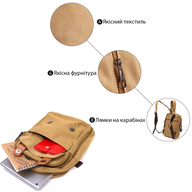 Відмінна багатофункціональна сумка-рюкзак із міцного текстилю. Виріб підійде як для роботи, так і в дорогу, легко переться і зовсім не вибагливий у догляді. З таким аксесуаром у Вас усі особисті речі під рукою – а значить у безпеці. Модель дуже практична та універсальна, її можна носити в руці, на спині, на плечі та через плече як плечову сумку. Якщо ви давно шукаєте сумку-рюкзак, яка підійде на кожен день – рекомендуємо Вам цю модель.