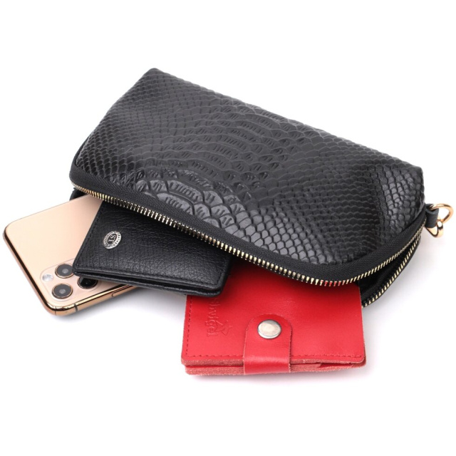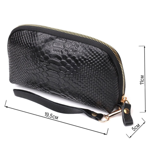 Зручна жіноча барсетка, яка займає мало місця і при цьому вміщає все необхідне для виходу з дому. Аксесуар складається з одного відділення, що закривається на блискавку, всередині якої знаходиться кишеня на блискавці та кишеня відкритого типу. Носити сумку можна в руці та на зап'ясті. В аксесуарі використано якісну фурнітуру кольору жовтого золота