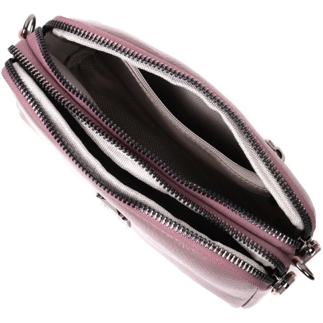 Сумка для жінок невеликого розміру на два автономні відділення з натуральної шкіри флотар, яка невибаглива у догляді та довго носиться. Аксесуар складається з двох автономних відділень, кишені відкритого типу, потайної кишені на блискавці та зовнішньої кишені на блискавці, що знаходиться на тильній стороні. Носити сумку можна в руці, на зап'ясті для цього передбачений шкіряний кистьовий ремінь, що знімається, а також на плечі і через плече, для цього є шкіряний знімний ремінь. В аксесуарі використано якісну фурнітуру кольору срібла. Відмінний варіант сумки для жінок, які люблять якісні та стильні речі.