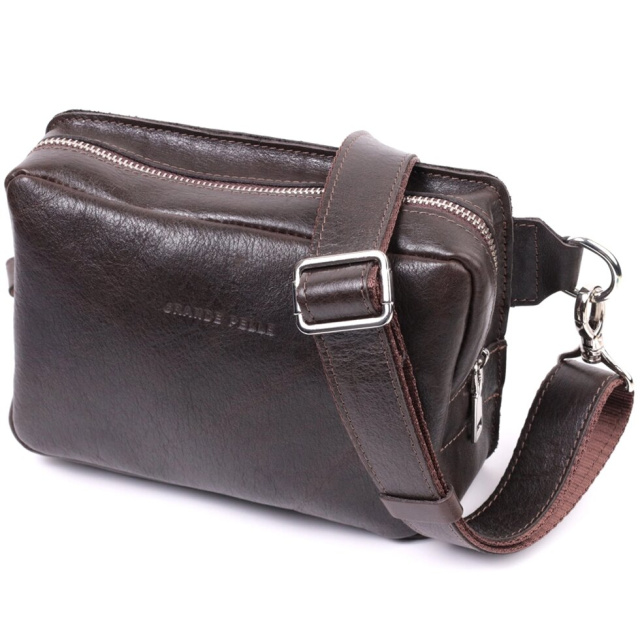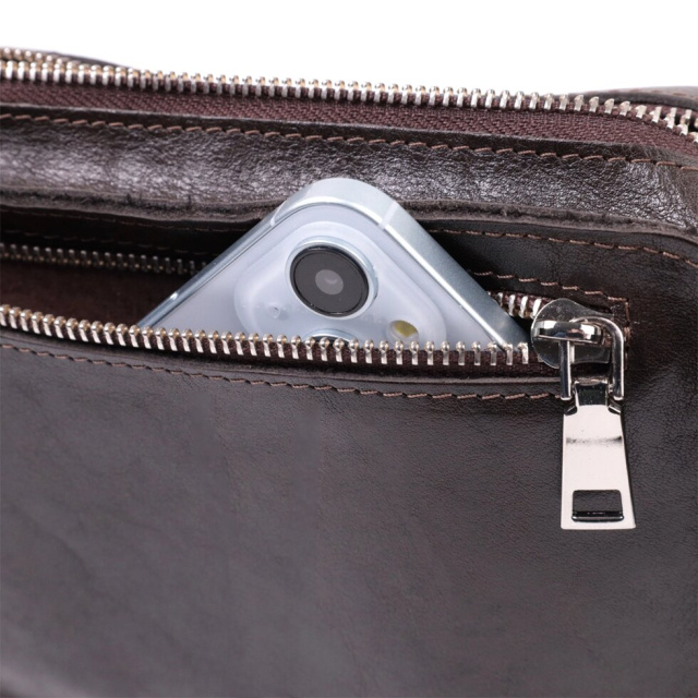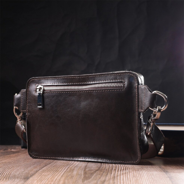 На вигляд невелика сумка-бананка, але повірте дуже містка та зручна. Модель унісекс, підійде як жінкам, так і чоловікам. Носити таку сумку можна на поясі, а також через плече, це дуже зручно у подорожах, коли всі найцінніші речі мають бути під рукою. Виріб виконаний виключно з натуральної італійської шкіри найвищої якості, яка має благородний блиск та приємну фактуру. Сумка доповнена якісною фурнітурою срібного кольору, шви рівні та акуратні. Аксесуар упакований у стильну фірмову сумку з повсті, що дуже зручно, якщо аксесуар призначений на подарунок.