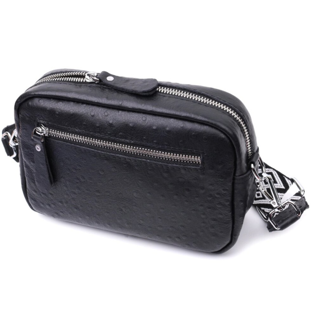 Стильна жіноча сумка на кожен день із натуральної шкіри. Аксесуар складається з основного відділення, що закривається на блискавку, кишені на блискавці та кишені відкритого типу всередині та двох кишень зовні, на лицьовій та тильній стороні. Носити сумку можна на плечі і через плече для цього є текстильний ремінь, що знімається.