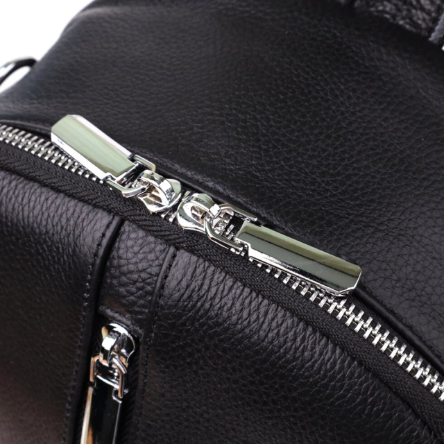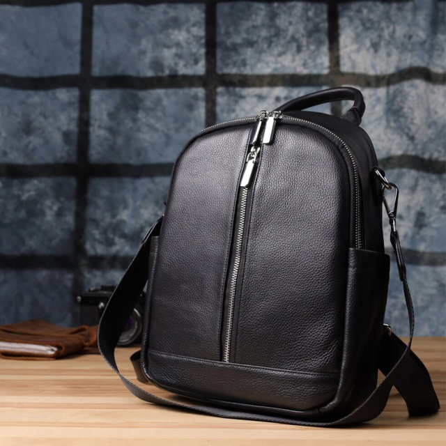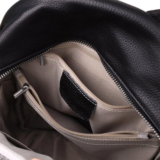 Жіночий шкіряний рюкзак виконаний з якісної шкіри та поєднує в собі стиль та практичність. Основне відділення з двома бігунками на блискавці забезпечує надійне зберігання речей та зручний доступ. Усередині рюкзака розташовані дві кишені на блискавках і одна відкритого типу для організації дрібниць.