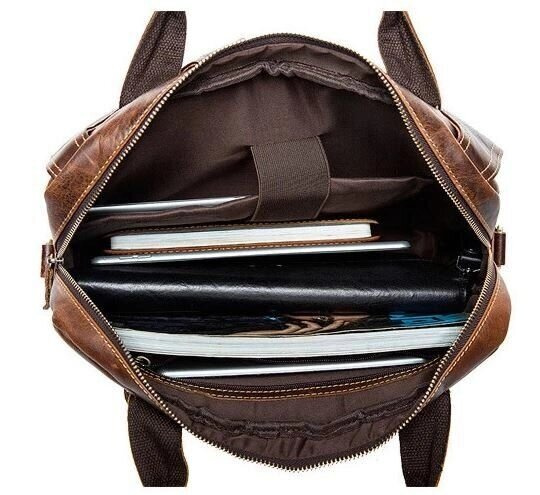 Стильна сумка для ноутбуку в коричневому кольорі з ефектом потертості. Аксесуар виконаний з натуральної телячої шкіри високої якості. Сумка доповнена різноманітними кишенями для найнеобхіднішого. Аксесуар красиво доповнить ваш образ і стиль. Переплачуючи за шкіряну сумку ви не пошкодуєте, так як вона прослужить вам дуже довго. Шкіра дуже невибаглива в догляді і при цьому довго носиться. Модель додасть завершеності вашому образу і підійде під будь-який стиль. Буде чудовим подарунком для близької людини.