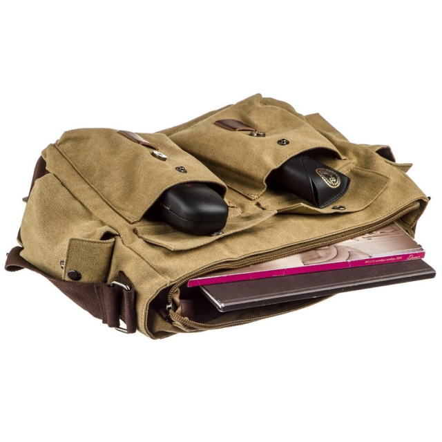 Текстильна сумка для ноутбука середнього розміру. Модель зручно носиться на плечі. Сумка досить легка. Поклавши в неї ноутбук - вам не буде важко. Модель застібається на клапан з магнітними кнопками і лямки. Сумка не вимагає до себе складного догляду і легко стирається. Модель доповнена кишенями на лицьовій стороні і з боків сумки, що допоможе вам легко розмістити всі ваші особисті речі. У нашому магазині ви знайдете цю модель в декількох кольорах. Чорному, синьому, коричневому і пісочному кольорі.