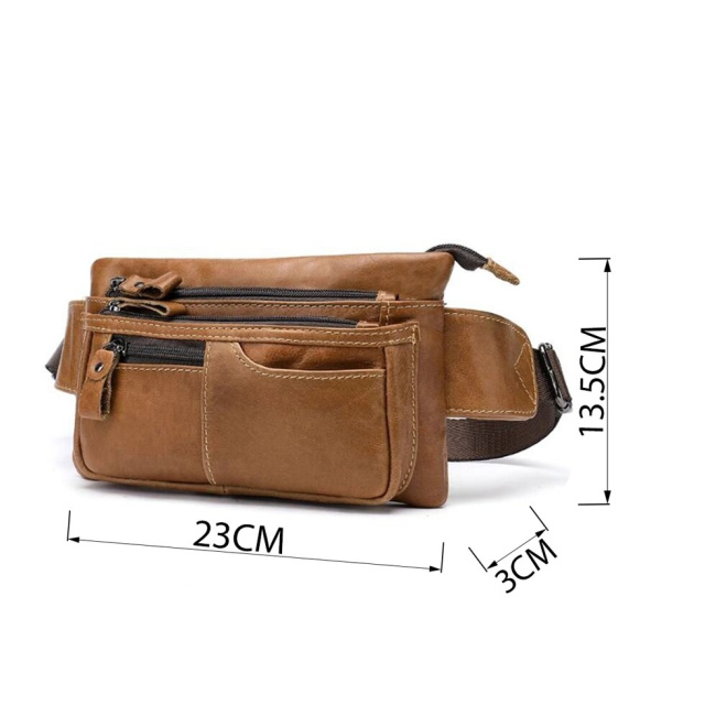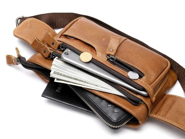 Сумка на пояс з простим, невимушеним дизайном. Поясні сумки користуються величезною популярністю серед чоловіків. З такою сумкою все найважливіше буде у вас завжди під рукою. А вкрасти сумку з пояса буде набагато складніше. Тому з такою бананкою ви будете почувати себе безпечніше. Також, з нею зручно їздити в транспорті або брати її в далекі поїздки. Хороший варіант малогабаритний, але при цьому досить місткий. Вам буде легко з такої сумки дістати документи або гроші при необхідності. Модель прошита рудою ниткою і доповнена фурнітурою сріблястого кольору. Буде добре виглядати в якості подарунка для близької людини.