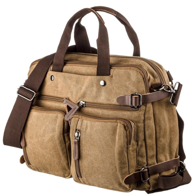 Легка, текстильна сумка на два відділення. Модель можна носити як сумку, так і рюкзак. Аксесуар має бічні регулятори і може розширюватися в обсяг в залежності від набитості сумки. Виріб має достатню кількість кишеньок, і ви з легкістю вмістите всі свої особисті речі. Сумка виконана з якісного і міцного текстилю. Виріб стане гідною заміною, якщо ви не хочете переплачувати за моделі з натуральної шкіри.