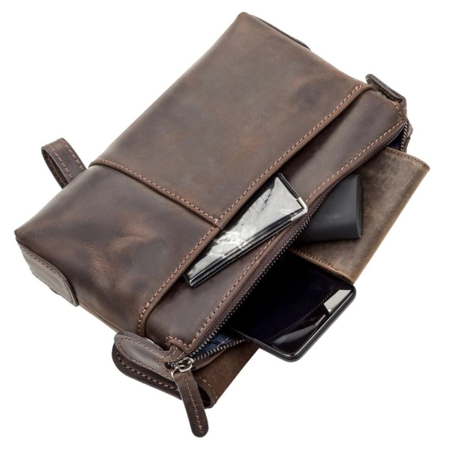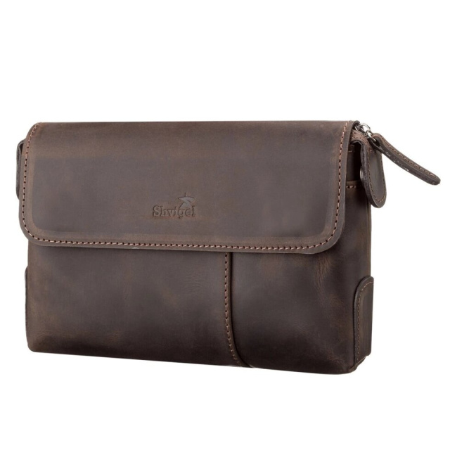 Цікава чоловіча сумка-клатч з натуральної високоякісної вінтажної шкіри, особливістю, якої є потертості і неоднорідність забарвлення. Даний аксесуар не тільки функціональний у використанні, але доповнює і підкреслює діловий, елегантний образ сучасного чоловіка.