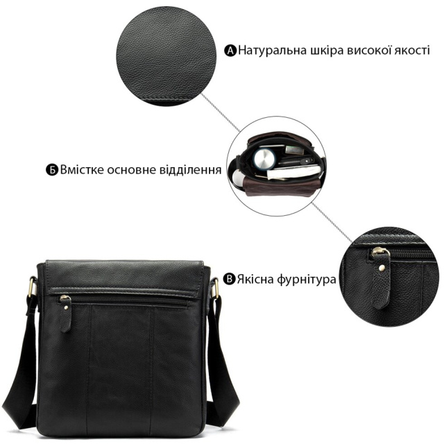 Солідна чоловіча сумка з натуральної шкіри чорного кольору і вертикального формату. Всередині - коричнева текстильна підкладка. Доповнено виріб фурнітурою золотистого кольору з міцного металу. Сумка стане ідеальним помічником чоловікові на кожен день. Виріб створено для чоловіків, які цінують якість. Модель виконана в зернистій шкірі. Аксесуар м'який і приємний на дотик. Сумка прекрасно тримає форму. З нею буде також дуже зручно ходити на роботу. Виріб стане чудовим подарунком для будь-якого чоловіка. У комплекті до сумки йде пилозахисний чохол.