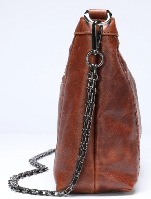 М'яка і компактна жіноча сумочка з натуральної шкіри високої якості. Виріб дуже зручний. Прекрасний варіант невеликої сумки на кожен день. Модель доповнена фурнітурою сріблястого кольору. Шкіра м'яка і приємна на дотик. Сумка прекрасно виносить негоду. Усередині аксесуара підкладка коричневого кольору. Модель має два знімних ремінця на плече (один у вигляді ланцюжка, інший текстильний зі шкіряною вставкою). Ідеальний варіант для будь-якої дівчини.