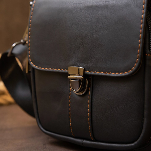 Компактна сумка в щільній шкірі гладкого типу. Виріб має в дизайні рудий рядок. Виріб має дуже практичний функціонал незважаючи на свій компактний розмір. В сумку можна помістити ваші особисті речі (мобільний, гаманець, документи, кредитницю, повербанк, ключі та багато іншого). Виріб доповнено якісною фурнітурою. Виробництво - фабричний Китай високої якості. У комплекті до сумки - пилозахисний чохол. Сумка - ідеальний варіант як для себе так і на подарунок.