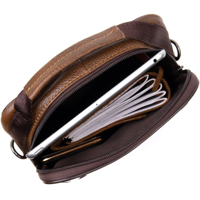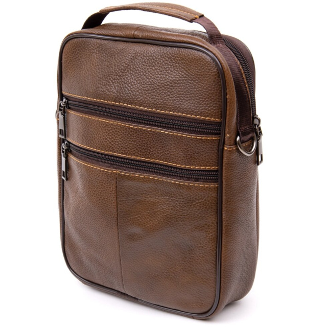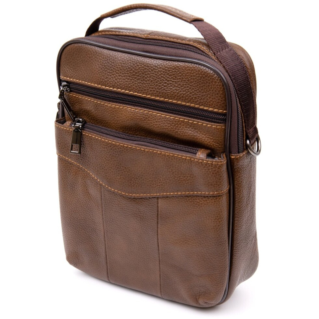 Компактний месенджер з натуральної шкіри дуже функціональний і має ідеальний розмір на кожен день. Аксесуар ви можете носити в руках або на плечі. Всередині - якісна текстильна підкладка. Виріб блищить на сонці. Виконано з м'якої шкіри. В сумку помістяться всі ваші необхідні особисті речі. Оригінальний коричневий колір виділить вас з натовпу. Месенджер - ідеальний подарунок для будь-якого чоловіка.