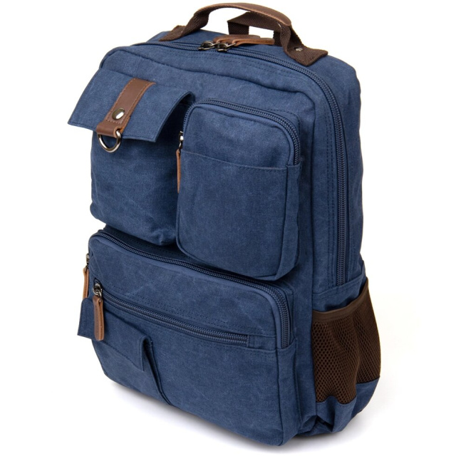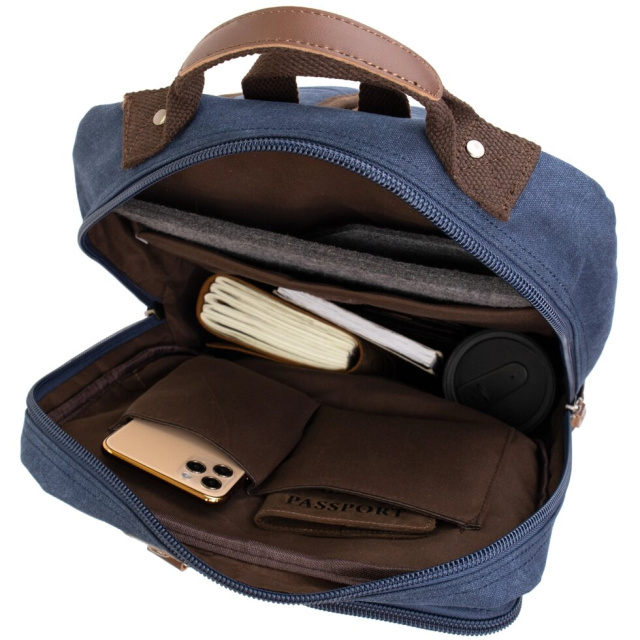 Комфортний і місткий рюкзак для ноутбука і в подорож. Виріб має дуже продуманий розмір і практичний функціонал. Рюкзак має безліч кишеньок різного типу. Всередині - якісна текстильна підкладка коричневого кольору. З таким рюкзаком зручно відправитися в дорогу так як він не важкий, за рахунок того що виконаний з текстилю. Доповнено рюкзак якісною фурнітурою. Синій колір рюкзака дуже універсальний і не мазкий. Рюкзак прослужить вам далеко не один рік. Рекомендуємо вам дану модель до покупки для ваших комфортних подорожей.
