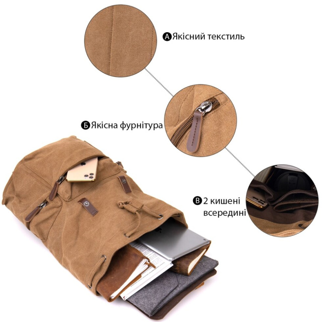 Стильний туристичний рюкзак в коричневому кольорі. Модель дуже містка і підійде під ноутбук. Усередині рюкзака - щільна текстильна підкладка коричневого кольору. Рюкзак також має стягуючі шнурки. Закривається на клапан. Доповнено рюкзак зручною спинкою яка тримає вашу спину. Рюкзак дуже легкий. Підійде виріб для походів, в дорогу і для занять спортом. Зручний рюкзак стане знахідкою для сучасного клієнта. Рекомендуємо вам до покупки дану модель. Доступний рюкзак на нашому сайті в різних кольорах.