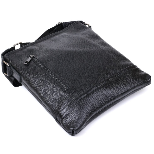 Стильна сумка для чоловіків в універсальному чорному кольорі із зернистою фактурою. Матеріал виготовлення – натуральна шкіра високої якості та високою стійкістю до зношування. Має містке відділення на блискавці та дві зовнішні кишені. Така сумка прикрасить гардероб будь-якого чоловіка.
