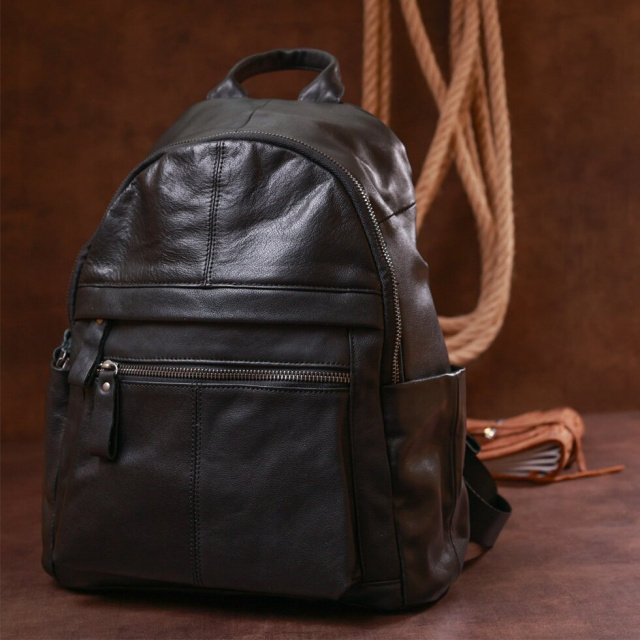 Практичний та функціональний рюкзак з натуральної високоякісної шкіри з відмінними показниками міцності та стійкості до зношування. Внутрішнє наповнення дуже багате і представлене у вигляді просторого основного відділення та різних кишень різного розміру. Шлейки регулюється по довжині та зроблені у поєднанні міцного текстилю та натуральної шкіри.
