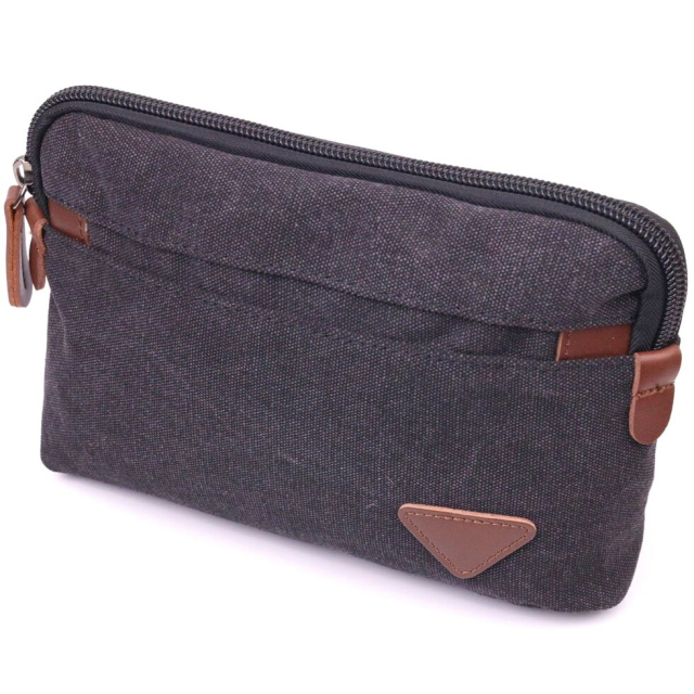 Сучасна текстильна барсетка в чорному кольорі має класичний і зручний дизайн з практичним функціоналом. Аксесуар має одне основне відділення, дві внутрішні кишені, одна з яких на блискавці, ущільнена одна стінка, знімний кистьовий ремінь. У барсетку поміститься чимало речей, а наявність кишень допоможе вам ідеально їх розкласти. У поєднанні з якісною фурнітурою та міцною підкладкою барсетка прослужить Вам не один рік. Виріб стане чудовим подарунком для будь-якого чоловіка.
