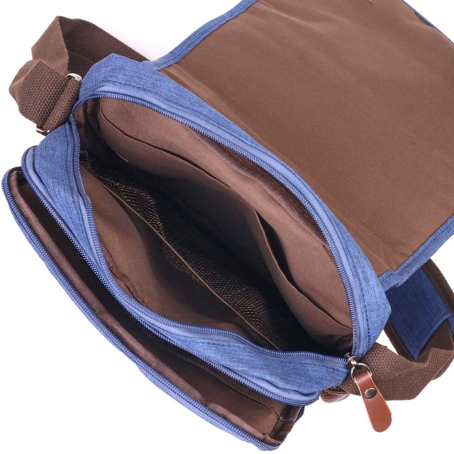 Містка чоловіча сумка із міцного текстилю. Аксесуар має два основні відділення, п'ять внутрішніх кишень різних розмірів, один із яких із сітки. У сумку поміститься досить багато речей, а наявність кишень допоможе вам ідеально їх розкласти. Сумка чудово поєднується зі стилем кежуал, а також мілітарі. Модель дуже практична та універсальна. Виріб стане чудовим подарунком для будь-якого чоловіка.