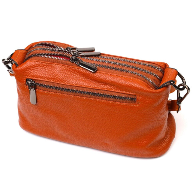 Практична жіноча сумочка з натуральної шкіри високої якості. Виріб дуже зручний, можна носити на плечі, через плече та під рукою. Модель доповнена фурнітурою кольору темного срібла. Аксесуар має три основні відділення у яких дві кишеньки - на блискавці та відкритого типу, а також кишеня на блискавці зовні. Закривається модель на блискавки, кожне відділення. Ідеальний варіант для будь-якої дівчини на будь-який сезон.