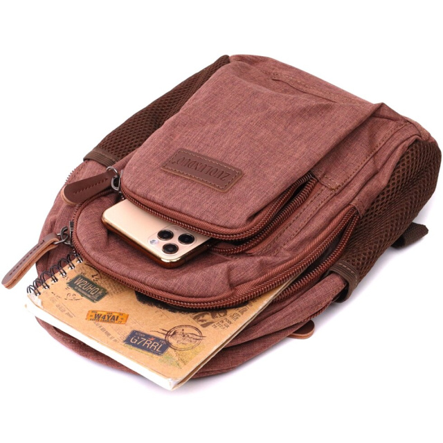 Компактний міський рюкзак на кожен день із міцного поліестеру. Має простий дизайн, безліч кишень різних за розміром, носити цю модель можна в руці, на спині, а також як рюкзак-сумку через плече. В аксесуарі використано якісну фурнітуру, яка прослужить Вам не один рік. Варто також відзначити, що модель зовсім невибаглива у догляді та легко стирається. Рюкзак з регульованими текстильними лямками. Якщо вам потрібен якісний рюкзак не на один рік – рекомендуємо вам цю модель.