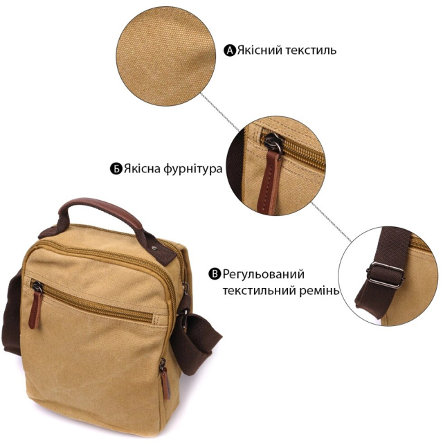 Ідеальна чоловіча сумка із якісного щільного текстилю. Аксесуар має достатньо кишень різних розмірів, що є запорукою порядку в сумці. Сумку можна носити в руці, на плечі та через плече. У поєднанні з якісною фурнітурою та міцною підкладкою сумка прослужить Вам не один рік. Виріб стане чудовим подарунком для будь-якого чоловіка.