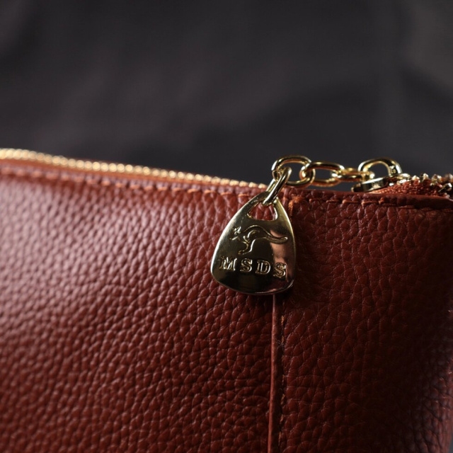 Компактна жіноча сумочка, яка займає мало місця і при цьому і вміщає все необхідне для виходу з дому. Аксесуар складається з одного відділення, що закривається на блискавку, всередині якої знаходиться кишеня на блискавці та кишеня відкритого типу. Носити сумку можна на плечі та через плече. В аксесуарі використано якісну фурнітуру кольору жовтого золота.