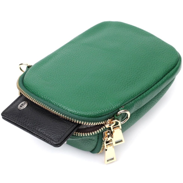 Стильна жіноча невелика сумка подовженого формату. Виріб пошитий з якісної натуральної шкіри, яка довго носиться і не втрачає свого первісного вигляду. Аксесуар складається з двох основних відділень. Носити сумку можна на плечі і через плече, для цього є шкіряний ремінь, що знімається. У виробі використано якісну фурнітуру кольору жовтого золота.
