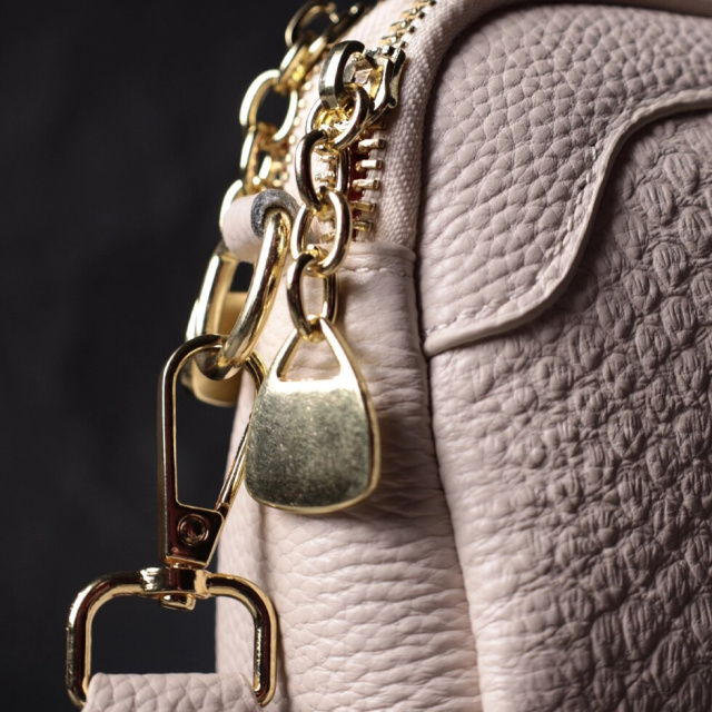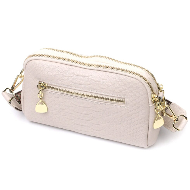 Жіноча сумка на два автономні відділення з натуральної шкіри з тисненням під змію, яка невибаглива у догляді та довго носиться. Аксесуар складається з двох основних відділень, потайної кишені на блискавці, кишені відкритого типу та кишені на блискавці зовні. Носити сумку можна в руках, на плечі і через плече, для цього є текстильний ремінь, що знімається. У виробі використано якісну фурнітуру кольору жовтого золота. Універсальний варіант сумки як на вечір так і як сумочка на кожен день.