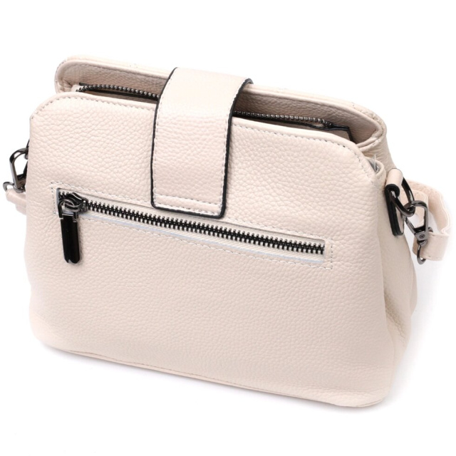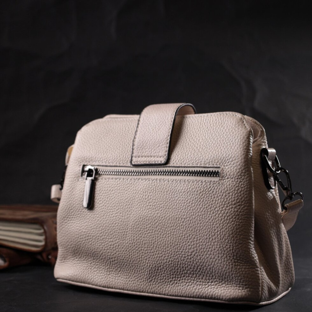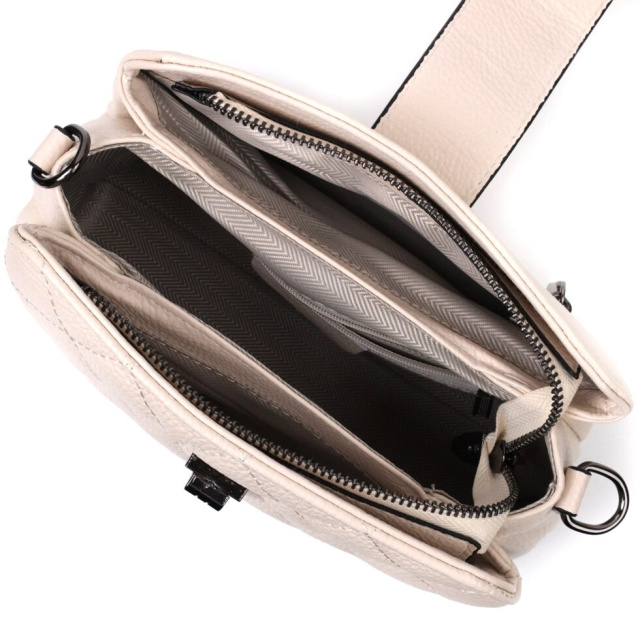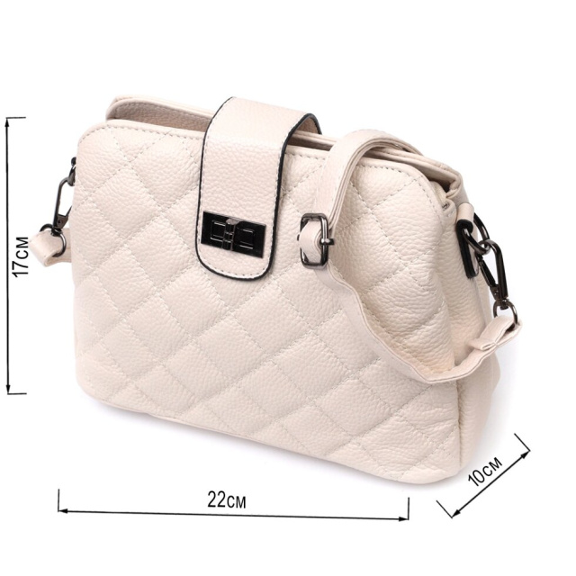 Стьобана жіноча сумка з натуральної шкіри флотар, яка невибаглива у догляді та довго носиться. Аксесуар складається з трьох основних відділень, потайної кишені на блискавці, кишені відкритого типу та кишені на блискавці зовні. Носити сумку можна під рукою, на плечі і через плече, для цього є шкіряний ремінь, що знімається. У виробі використано якісну фурнітуру кольору темного срібла. Універсальний варіант сумки як на вечір так і як сумочка на кожен день.