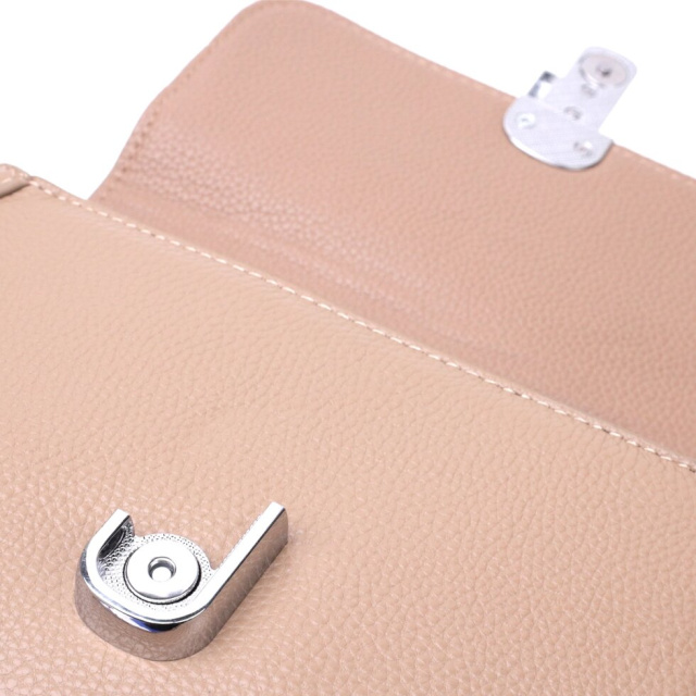 Цікава жіноча сумка з якісної натуральної шкіри, яка довго носиться і не втрачає свого первісного вигляду. Аксесуар складається з одного основного відділення всередині якого потайна кишеня на блискавці, кишеня відкритого типу та кишеня-перегородка, а зовні, на тильній стороні розташована кишеня на блискавці. Носити сумку можна в руці, на плечі і через плече, для цього є шкіряний ремінь, що знімається. У виробі використано якісну фурнітуру срібного кольору. Універсальний варіант сумки як на вечір так і як сумочка на кожен день.