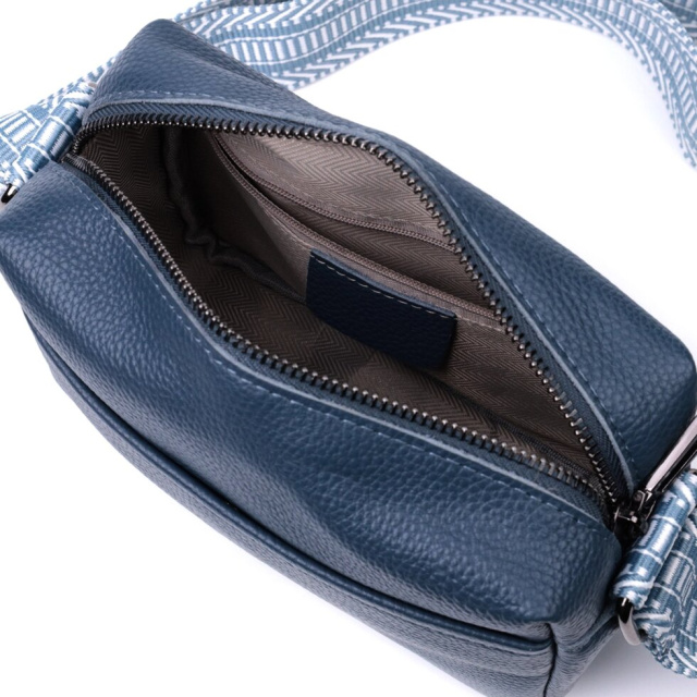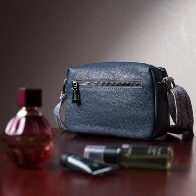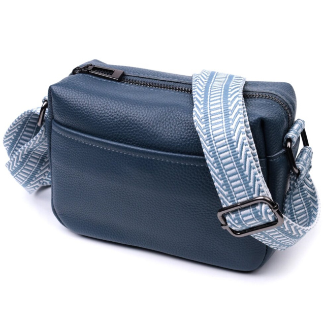 Цікава жіноча сумка на всі випадки із натуральної якісної шкіри. Аксесуар складається з основного відділення, яке закривається на блискавку, а також двох кишень зовні на лицьовій та тильній стороні. Носити сумку можна в руці, під рукою, на плечі і через плече, для цього є текстильний ремінь, що не знімається. В аксесуарі використано якісну фурнітуру кольору темного срібла. У нашому магазині Ви зможете придбати якісний шкіряний аксесуар, який завжди порадує жінку будь-якого віку.