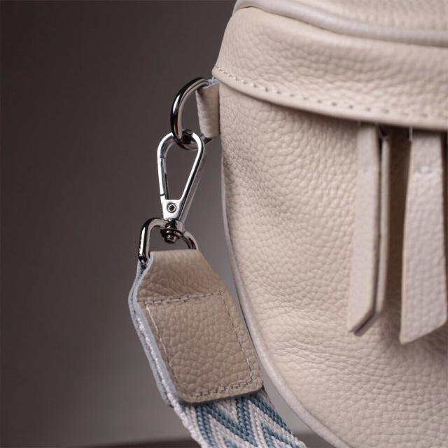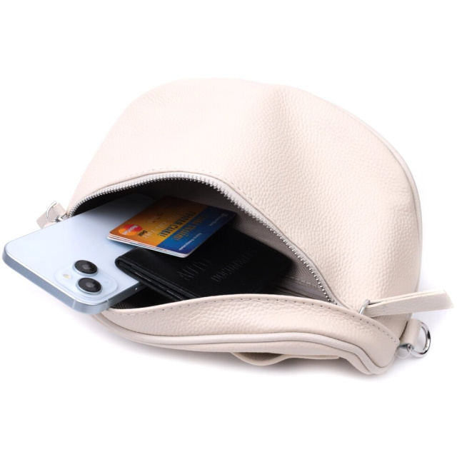 Ідеальна цього сезону сумка через плече з натуральної шкіри. Аксесуар складається з основного відділення, що закривається на блискавку, кишені на блискавці та кишені відкритого типу усередині. Носити сумку можна на плечі, через плече, а також в руках для цього є текстильний ремінь, що знімається, і шкіряна ручка.