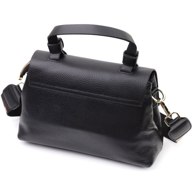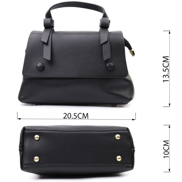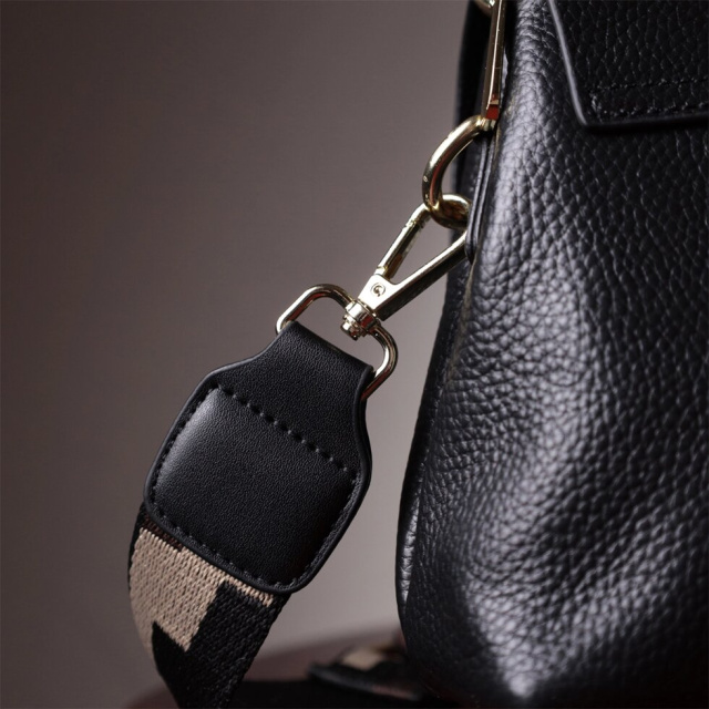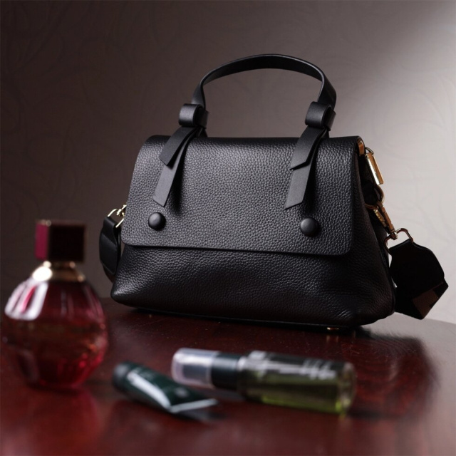 Жіноча ділова сумка з натуральної шкіри флотар, яка невибаглива у догляді та довго носиться. У виробі використано металеві ніжки на дні сумки для захисту дна від потертостей та механічних пошкоджень. Аксесуар складається з основного відділення, кишені відкритого типу та потайної кишені на блискавці всередині. Носити сумку можна в руці, на плечі і через плече, для цього є текстильний ремінь і шкіряна ручка. В аксесуарі використано якісну фурнітуру кольору жовтого золота. Універсальний варіант сумки під діловий стиль та на кожен день.