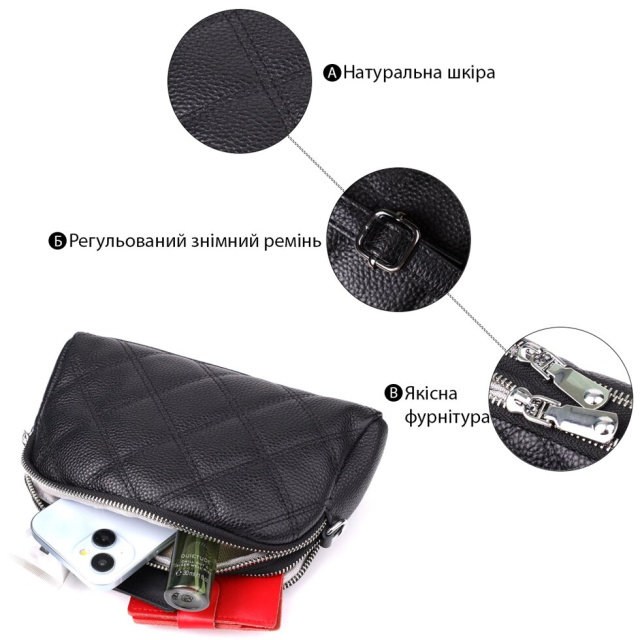 Стильна фурнітура сріблястого кольору гармонійно підкреслює сучасний дизайн виробу. Знімний шкіряний ремінь дозволяє носити сумку як на плечі, так і через плече, забезпечуючи комфорт у повсякденному носінні.