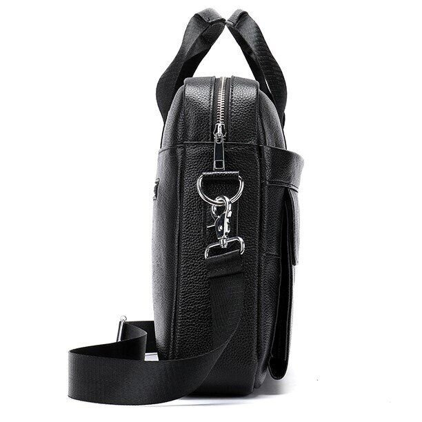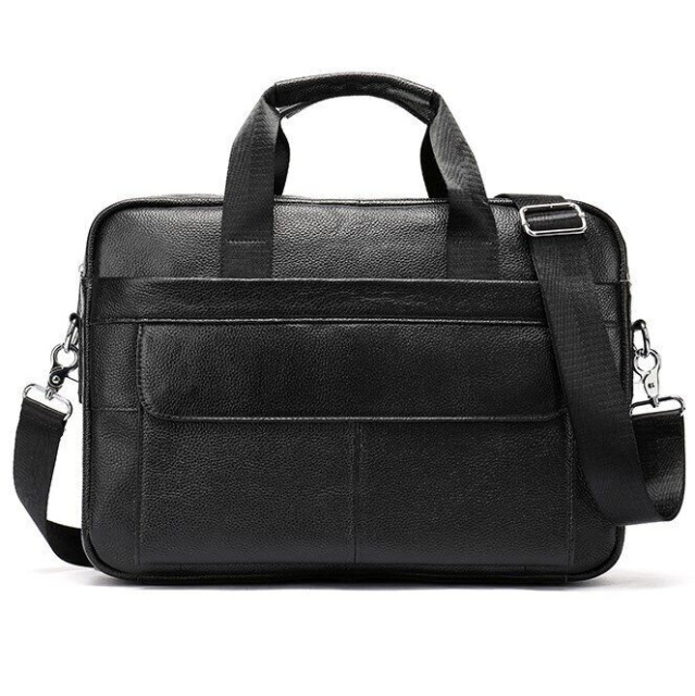 Популярна чорна сумка під ноутбук. Ноутбук 15.6 дюймів в сумку легко поміщається. Виконана з натуральної шкіри в класичному стилі. Ручки на сумці текстильні з шкіряними вставками. Для носіння на плечі є текстильний ремінець. Сумка чудово підійде для роботи і ділових зустрічей. А також, ви можете просто носити в ній все необхідне. Обсяги сумки адаптовані під папки з паперами. Фурнітура в сумці сріблястого кольору. Виготовлена з якісного металу. Модель упакована в пилозахисний чохол. Може бути ідеальним подарунком для близької людини.