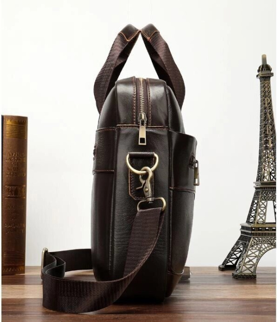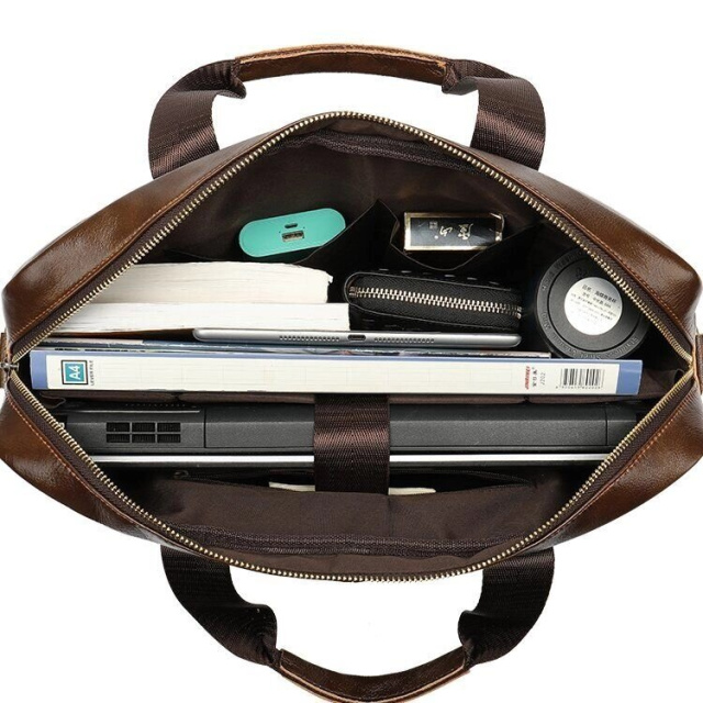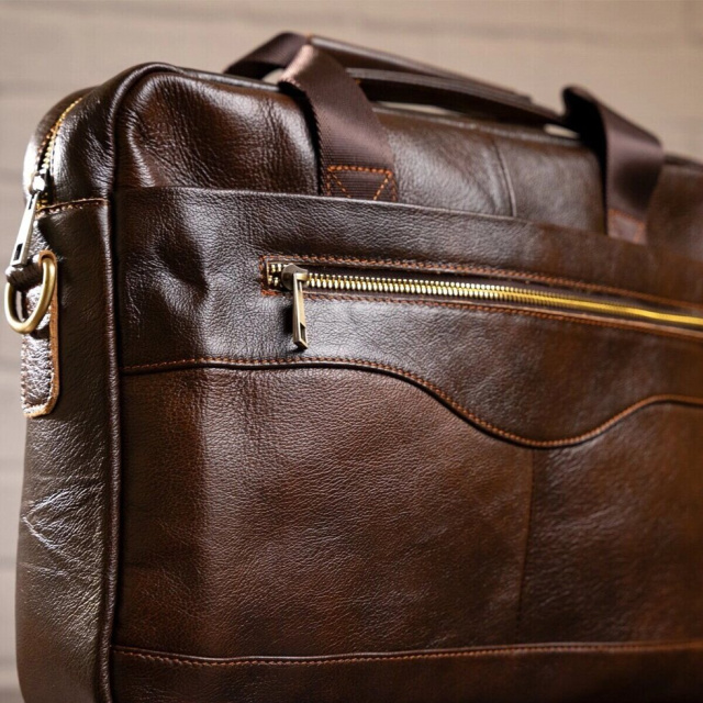 Стильна сумка для ділових чоловіків. Підкреслить ваш статус в суспільстві і відмінне почуття стилю. Аксесуар чудово впишеться в ваш діловий стиль. У сумці спокійно можна носити ноутбук і документи. Зручно носиться як в руках, так і на плечі за допомогою текстильної ручки. Дизайн аксесуара виготовлений в класичному стилі. Модель прошита рудою ниткою і доповнена золотистою фурнітурою. Буде чудовим подарунком для будь-якого чоловіка. Купуючи таку сумку, ви будете здивовані, як вона приємно носиться. Аксесуар упакований в тканинний чохол.