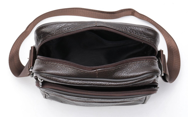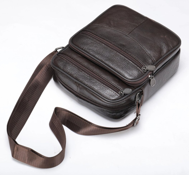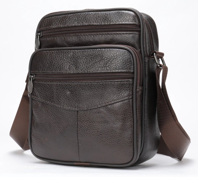 Якісна чоловіча сумка з натуральної шкіри. Виріб виконаний з зернистої шкіри коричневого кольору. Усередині аксесуара щільна текстильна підкладка коричневого кольору. Сумка буде вашим ідеальним варіантом на кожен день. Модель дуже зручна. Класичний дизайн ніколи не вийде з моди. Така сумка підійде під будь-які речі з вашого гардеробу. Модель доповнена якісною фурнітурою в дизайн виробу.