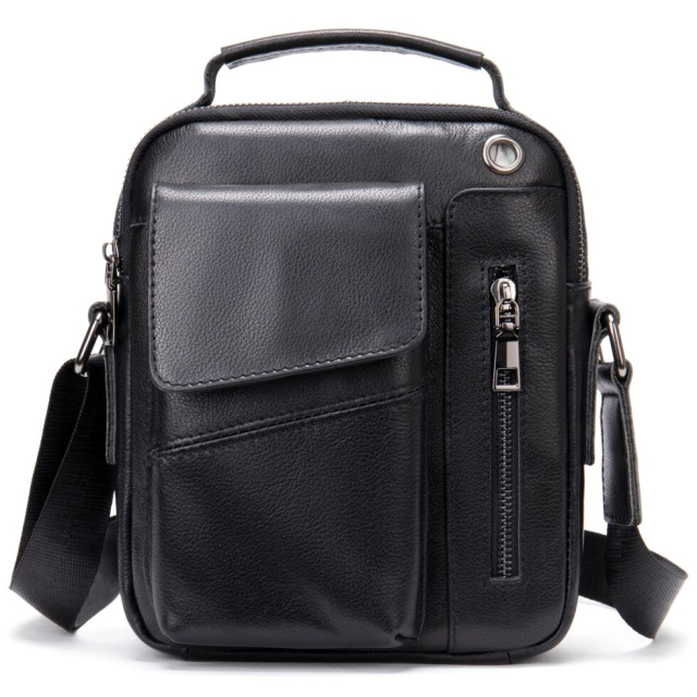 Вертикальна сумка з щільної гладкої шкіри для чоловіків. Виріб ідеально підійде на кожен день. Дизайн сумки продуманий до дрібниць і виглядає дуже солідно і стильно. Сумка доповнена якісною фурнітурою. Доповнена модель текстильним ремінцем. Закривається на блискавку. Аксесуар має дуже практичний функціонал. Сумка буде відмінним подарунком для близької людини. У комплекті йде пилозахисний чохол.