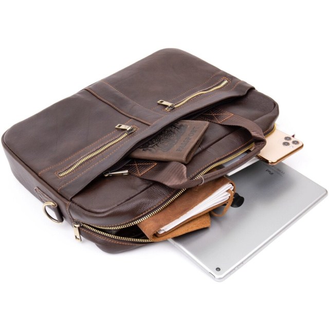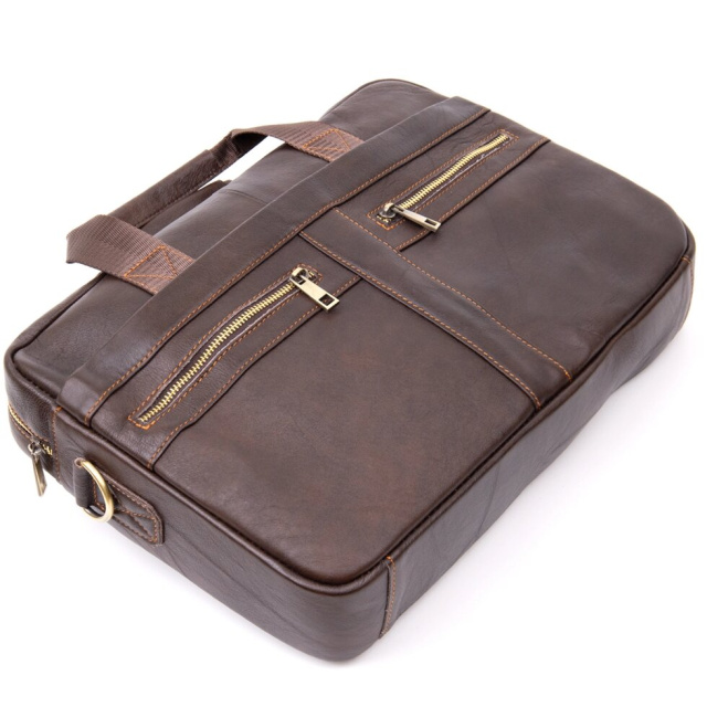 Ділова сумка для ноутбука в м'якій шкірі. Виріб насиченого коричневого кольору. У ущільнену кишеню сумки ви можете помістити ноутбук. А також в сумку помістяться ділові папери і папки з документами. Виріб стане прекрасним помічником як на кожен день, так і для ділових поїздок і зустрічей.