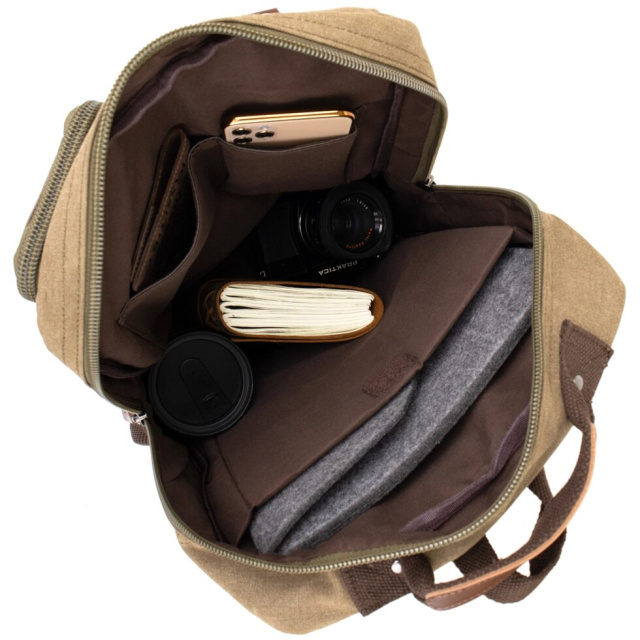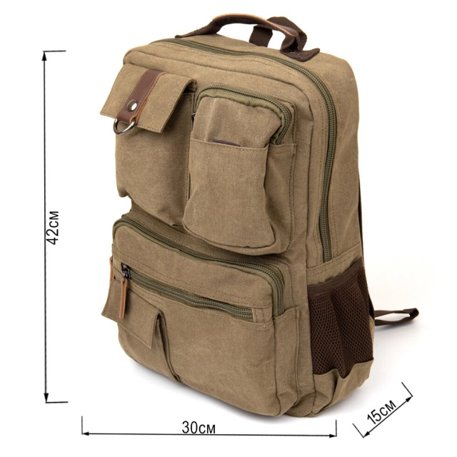 Комфортний і місткий рюкзак для ноутбука і в подорож. Виріб має дуже продуманий розмір і практичний функціонал. Рюкзак має безліч кишеньок різного типу. Всередині - якісна текстильна підкладка коричневого кольору. З таким рюкзаком зручно відправитися в дорогу так як він не важкий за рахунок того що виконаний з текстилю. Доповнено рюкзак якісною фурнітурою. Оливковий колір рюкзака дуже універсальний і не мазкий. Рюкзак прослужить вам далеко не один рік. Рекомендуємо вам дану модель до покупки для ваших комфортних подорожей.