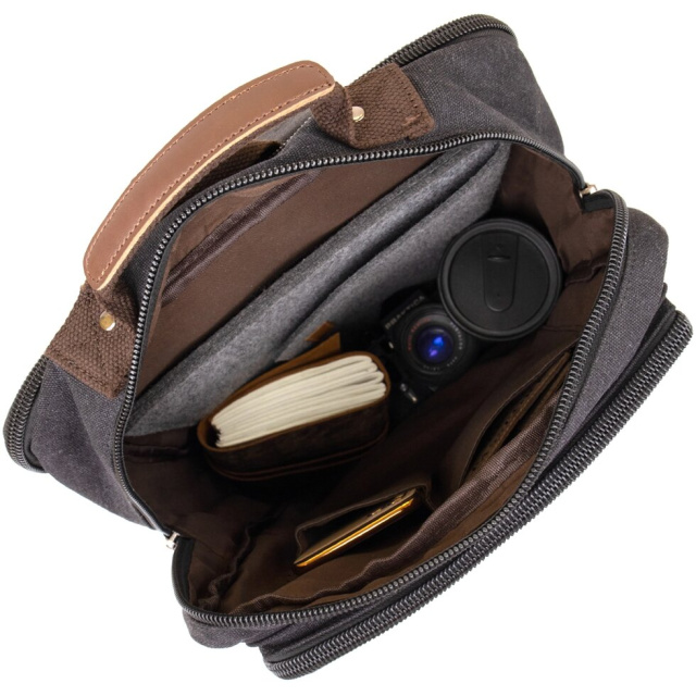 Великий рюкзак на два відділення текстильний практичного чорного кольору. Рюкзак дуже місткий. Виріб має дуже практичний функціонал. Рюкзак підійде для подорожей і відряджень. Незважаючи на свій великий розмір рюкзак не важкий. Закривається рюкзак на блискавку. Всередині - якісна підкладка. Виріб має ущільнену спинку для вашого комфорту. З рюкзаком ваші руки будуть вільні. У рюкзак поміщається ноутбук. Текстильний рюкзак - бюджетне рішення для вашого комфорту.