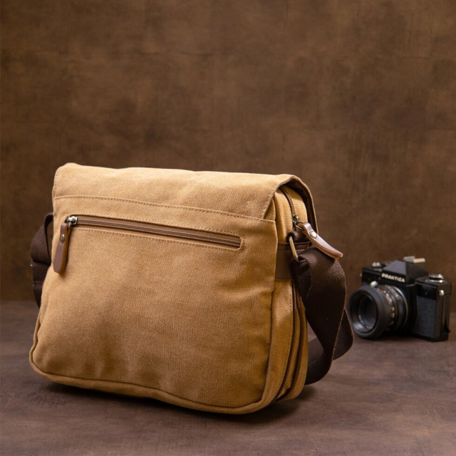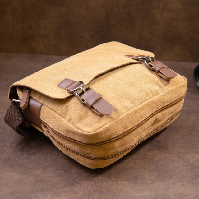 Невелика сумка почтальонка в пісочному кольорі. Аксесуар доповнено необхідним функціоналом. Закривається сумка на клапан з магнітними кнопками. Всередині - щільна текстильна підкладка. Сумку зручно носити на плечі. Текстильний ремінець не знімається. Сумка ідеальний варіант на кожен день за бюджетною вартістю.