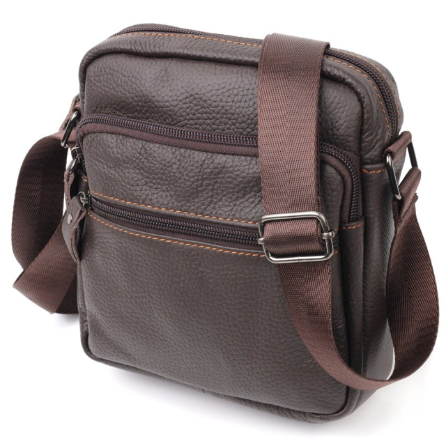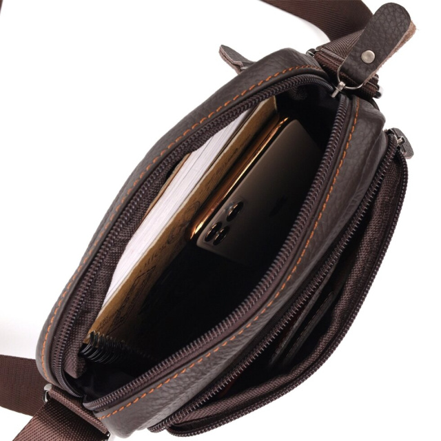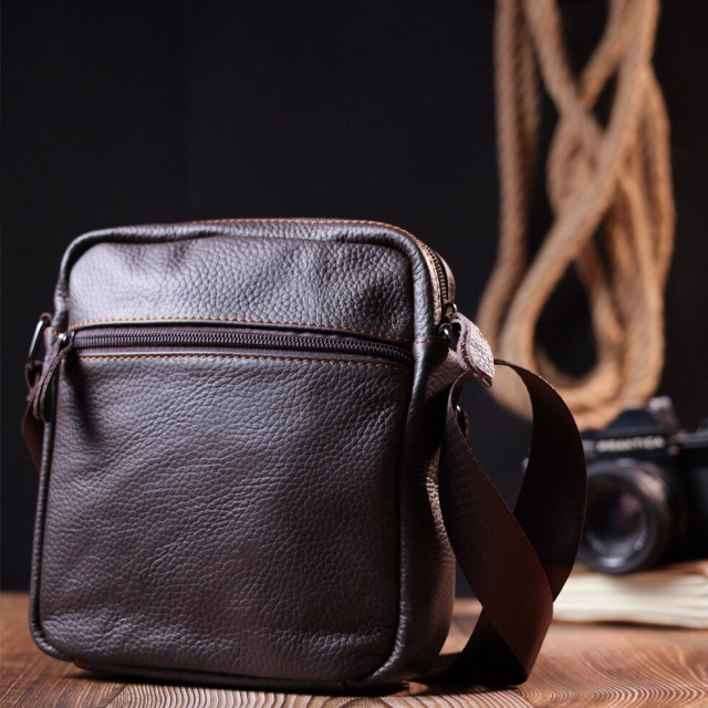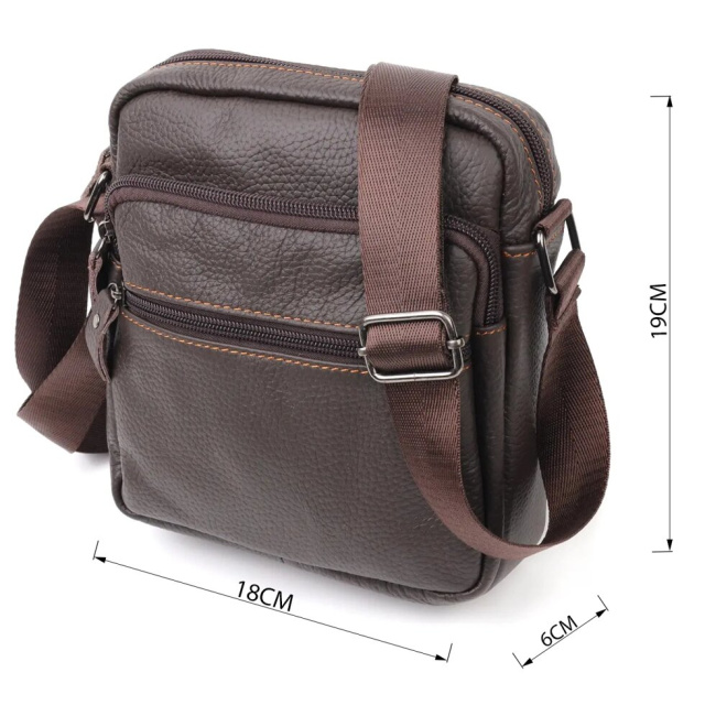 Невелика чоловіча сумка компактного розміру із натуральної шкіри. У сумку з легкістю помістяться всі необхідні речі. З такою сумкою зручно ходитиме на роботу або зустрічі. Доповнено виріб якісною фурнітурою. Сумка стане чудовим подарунком для близької людини.