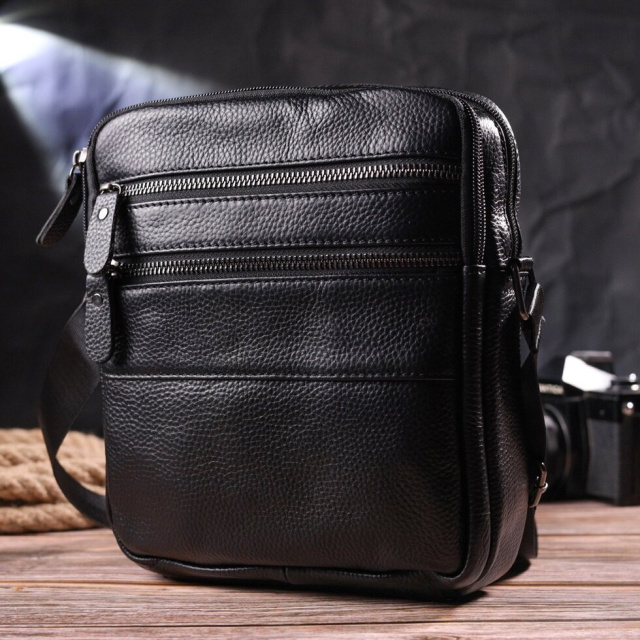 Практична чоловіча сумка середнього розміру із натуральної шкіри. Модель, яка ідеально підійде на кожен день. В аксесуарі одне основне відділення та п'ять кишень різних розмірів, сумку зручно носити на плечі. У сумку з легкістю помістяться всі необхідні речі. З таким аксесуаром усі Ваші речі будуть в порядку, з ним також буде зручно ходити на роботу чи зустрічі. Доповнено виріб якісною фурнітурою, темно-срібло кольору. Сумка стане чудовим подарунком для близької людини.