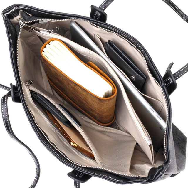 Містка модель жіночої сумки з натуральної м'якої шкіри високої якості. Виріб дуже зручний, можна носити на плечі та в руках. Модель доповнена фурнітурою срібного кольору. Аксесуар має одне основне відділення на блискавці, в якому дві бічні кишеньки - на блискавці і відкритого типу, і кишеня-перегородка через всю довжину. Модель закривається на блискавку. Ідеальний варіант для будь-якої дівчини на будь-який сезон.