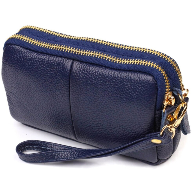 Стильна жіноча сумочка-клатч із натуральної м'якої шкіри високої якості. Виріб дуже зручний, можна носити в руці та на зап'ясті, відмінний варіант для любителів невеликих сумок. Модель доповнена фурнітурою золотистого кольору. Аксесуар має два основні відділення у яких по кишеньці - на блискавці та відкритого типу. Закривається клатч на блискавку.