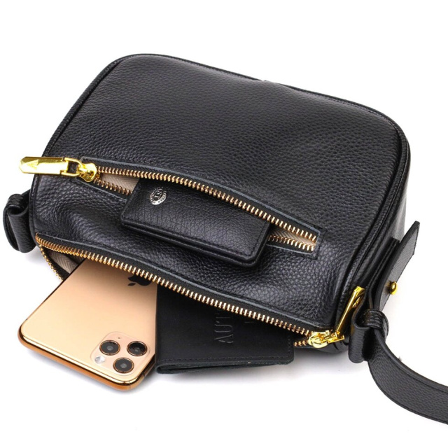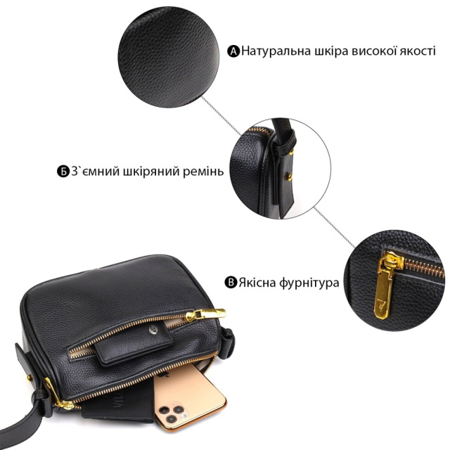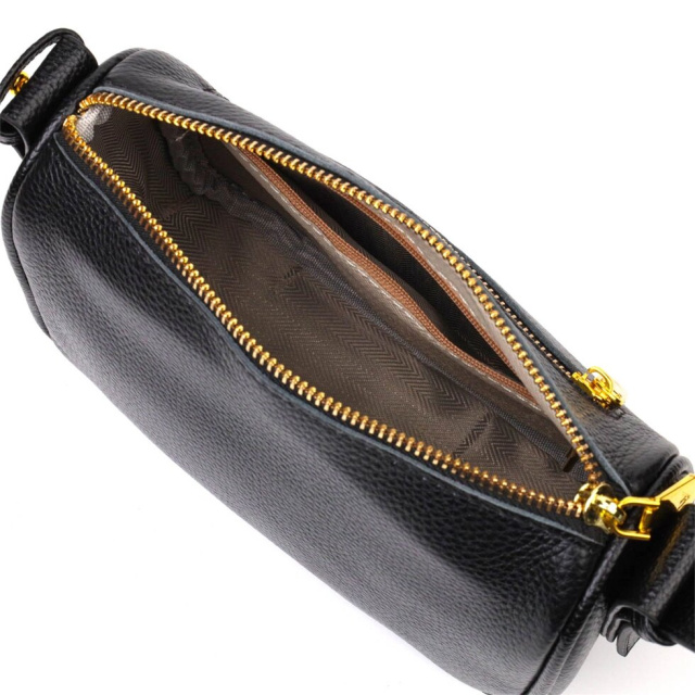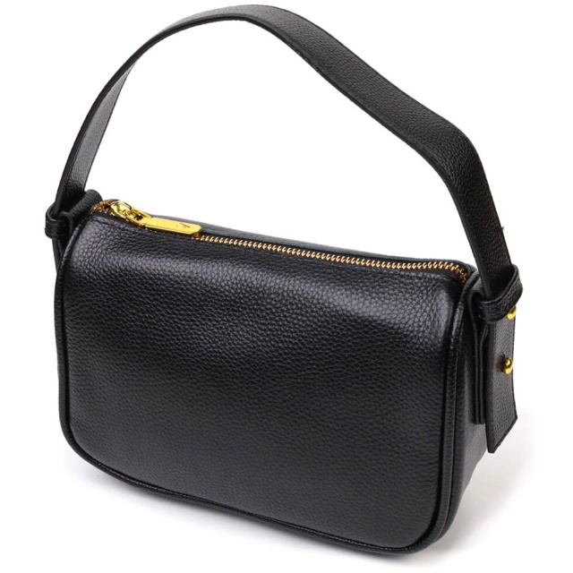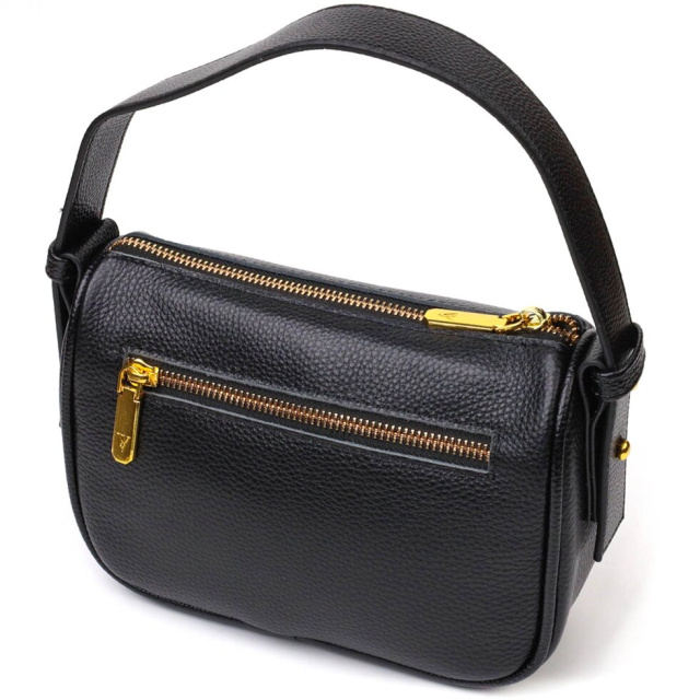 Цікава сумка із натуральної м'якої шкіри високої якості. Виріб дуже зручний, можна носити на плечі та в руках. Модель доповнена фурнітурою у кольорі жовтого золота. Аксесуар має одне основне відділення на блискавці, в якому дві кишеньки - одна на блискавці та одна відкритого типу, а також кишеня на блискавці зовні, на тильній стороні. Модель закривається на блискавку.